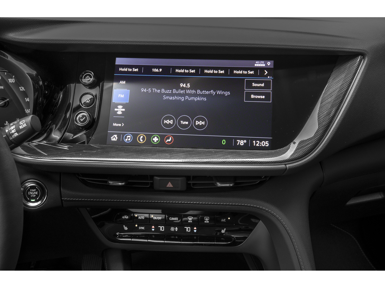 - Audio system, 8" diagonal Buick Infotainment System includes multi-touch display, AM/FM stereo, Bluetooth® streaming audio for music and most phones and Wireless Apple Carplay/Wireless Android Auto for compatible phones (Standard on FWD only.)